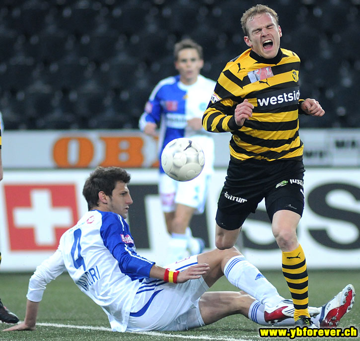 Alle Spieler schauen zu Ghezal, doch der hält sich den Kopf im Arm. Offenbar brummte ihm der Schädel von einem ungewollten Schlag, den er beim ausgelassenen Feiern seines Treffers von einem Teamkollegen kassierte.